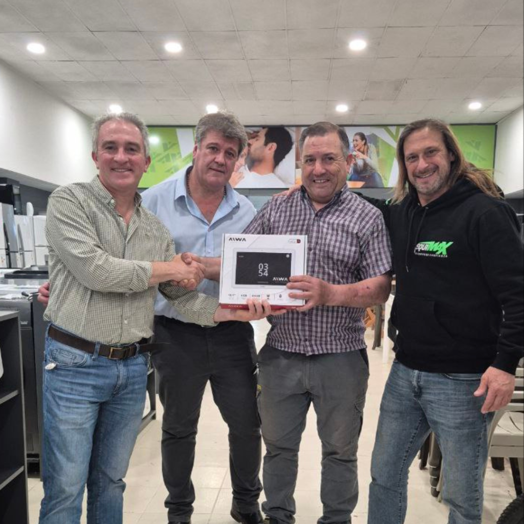 La entrega se llevó a cabo en Equimax, junto a su propietario Ezequiel Payero, estuvo encabezada por el presidente de la Cámara, Daniel Reus, acompañado por Marcelo Monetta, colaborador de la institución, y quienes realizaron la entrega de los electrodomésticos a los socios adjudicados.
